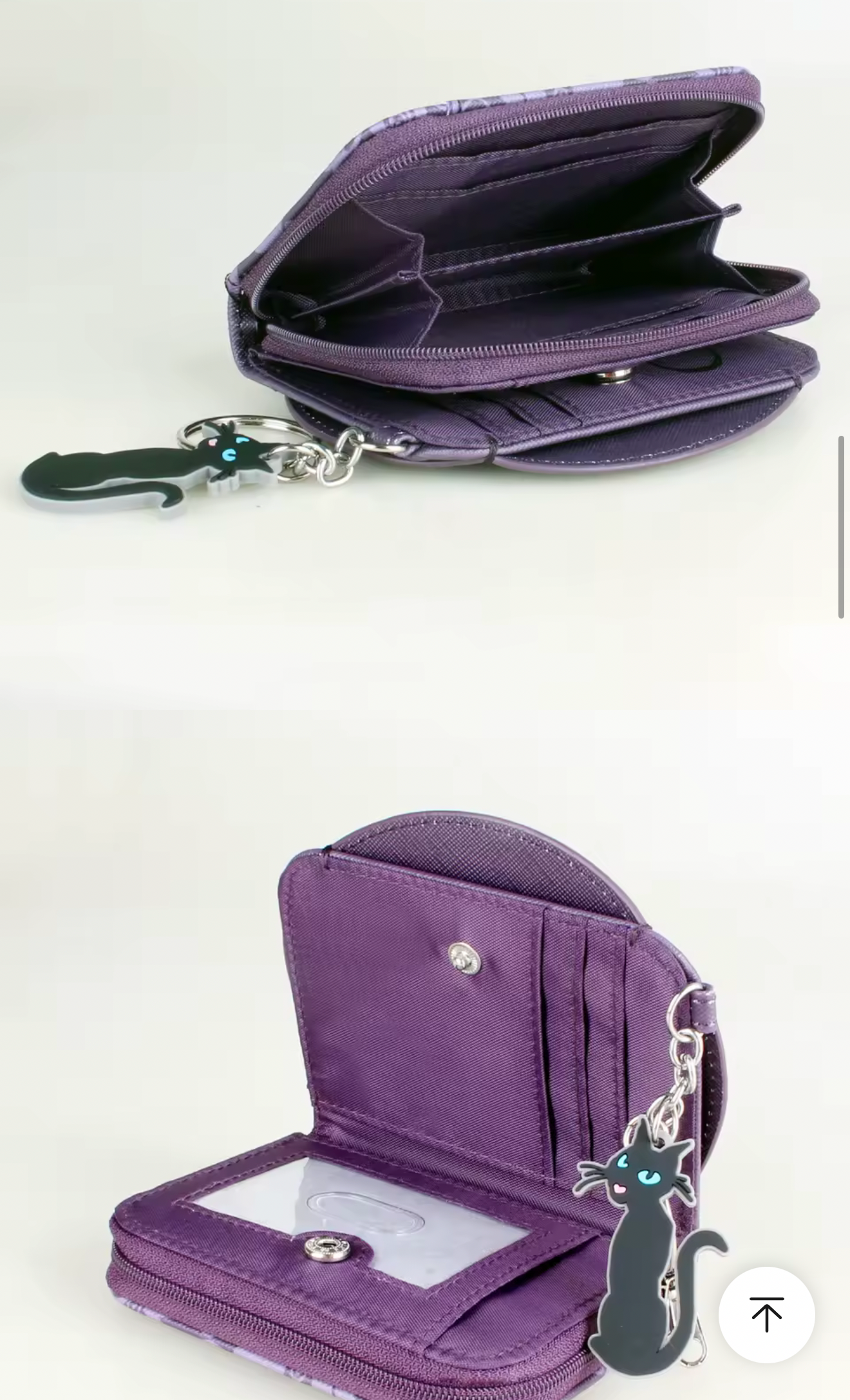 Incluye un llavero en forma del misterioso gato negro, que aporta un toque extra de estilo y colección. Su tamaño compacto lo hace ideal para llevar monedas, billetes pequeños o tus esenciales del día a día.